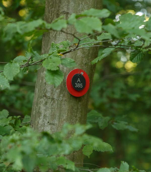 Freie Einzel- oder Paarbäume erkennen Sie an einer roten Plakette.